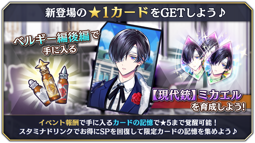 - 新実装「ミカエル(CV:野島健児)」の★3の新カードがピックアップガチャに登場!