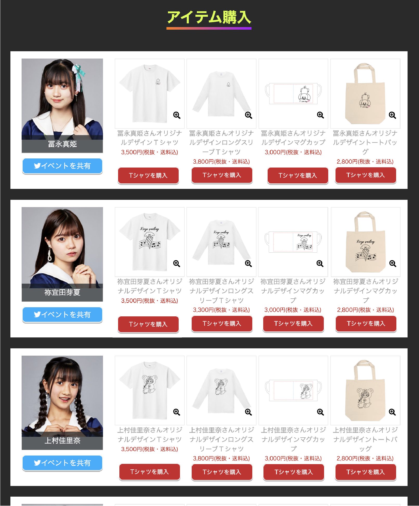 メンバーの個性溢れるTシャツを着て、参加アイドルと石川を応援しましょう!