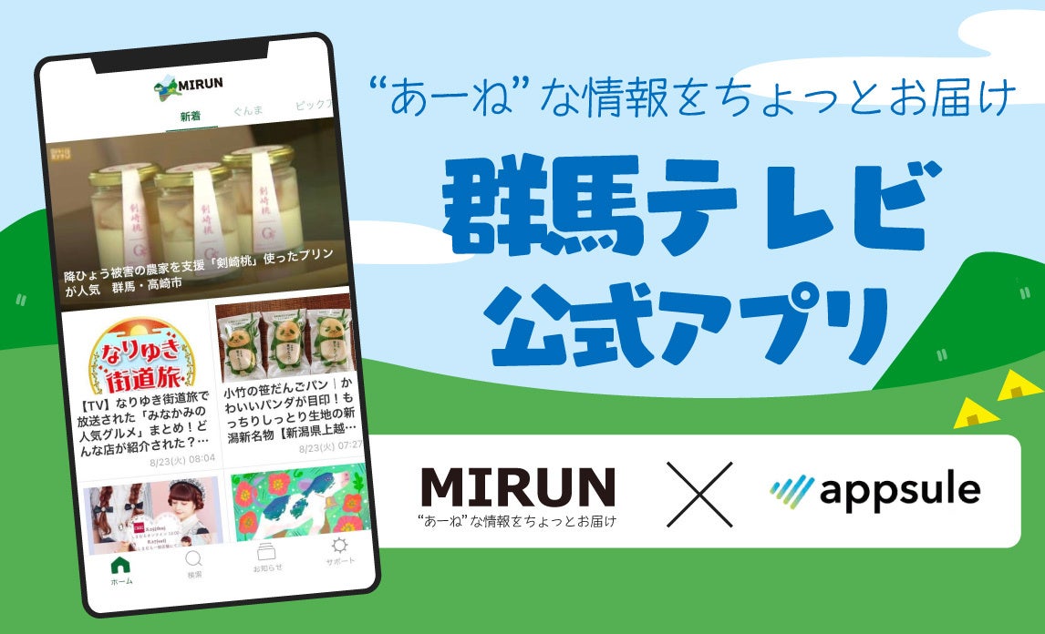 アプセルでは「オウンドアプリをもっと簡単に」を掲げ、創業から8年、ニュースメディア、ECストア・Shopify導入企業や人材会社、チケット・宿泊などの予約サービスなど多くの企業に導入いただきました。この度はこれまでのノウハウを活かし、群馬テレビ様公式アプリ「MIRUN」を制作。群馬県に住む皆様に向けての情報発信はもちろん、群馬へ旅行に来る方や群馬ファンと繋がるアプリ制作・運営を行っています。