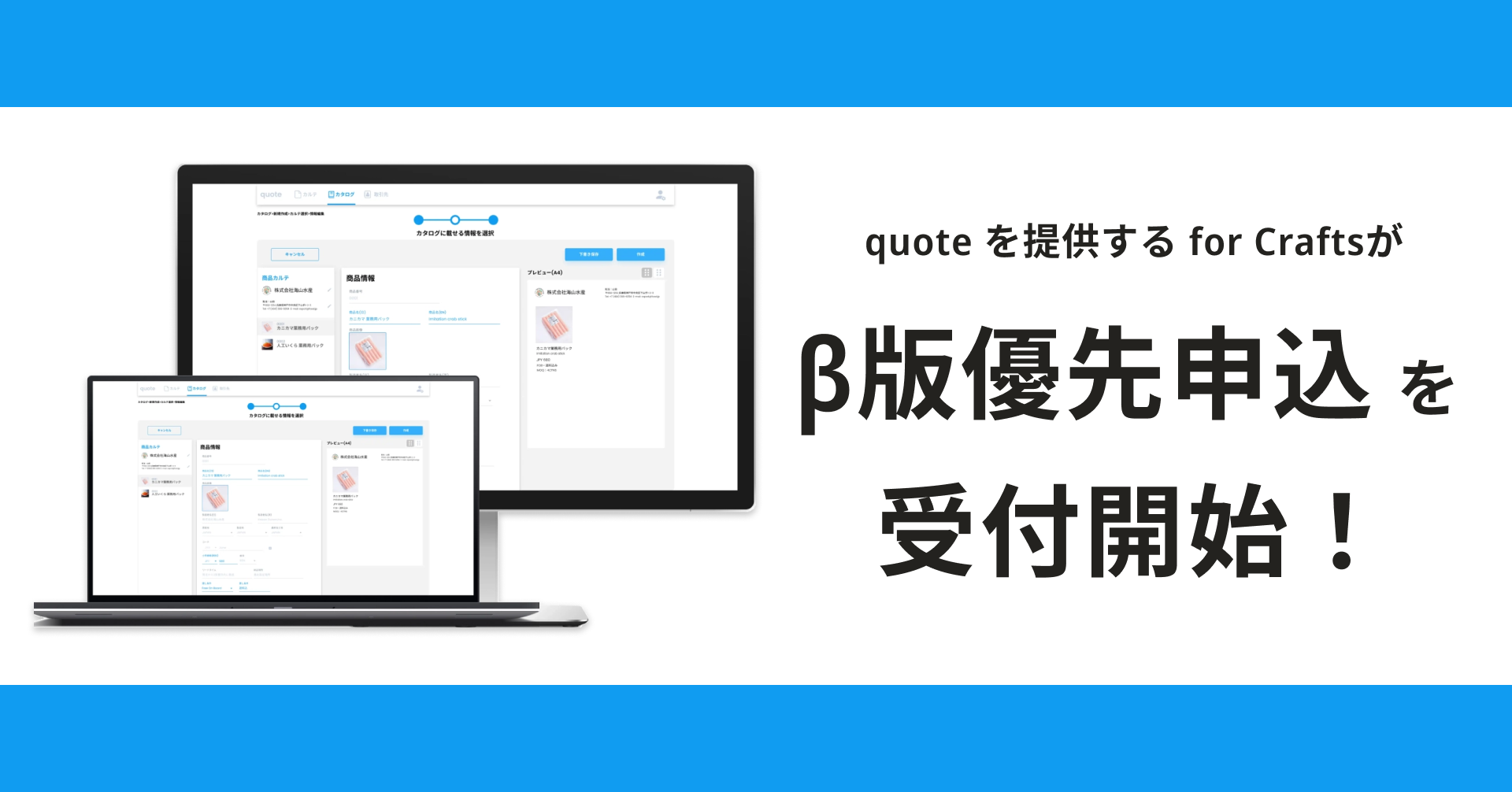 現在、株式会社for Craftsは、「quote」導入先企業を募集しています。ご興味をお持ちの企業の方は、下記フォームよりお問合せください。