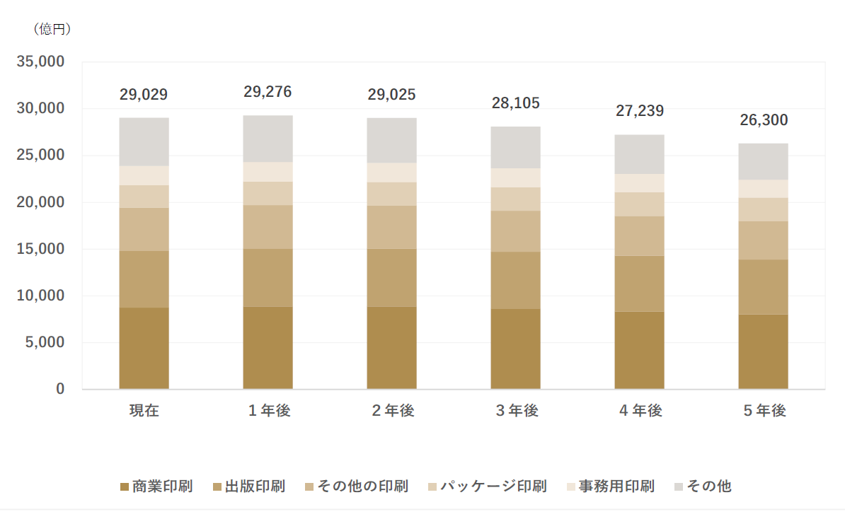 ■パッケージ印刷の市場成長が予測されるも、商業印刷とその他の印刷、出版印刷の市場が縮小