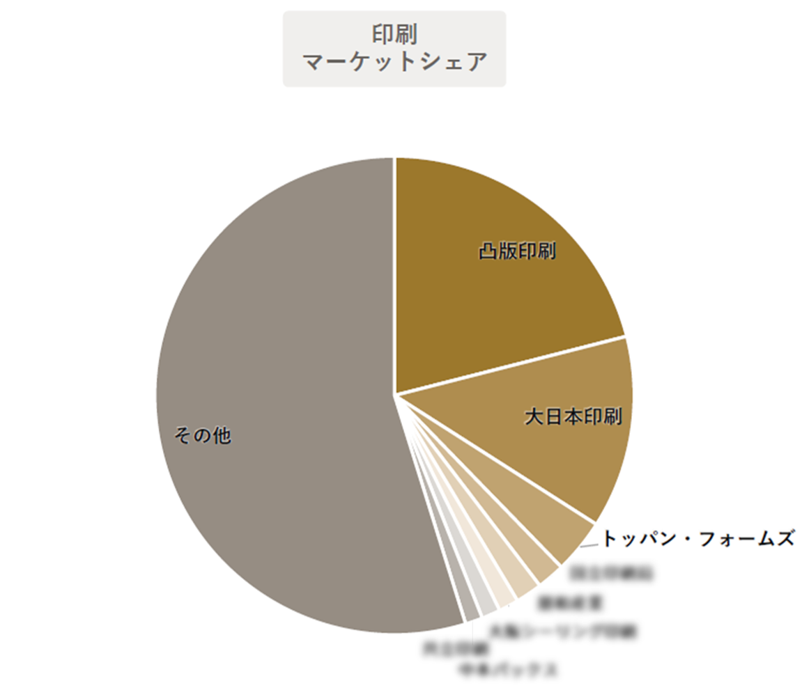 国内市場の主要プレイヤーとして、総合印刷会社である凸版印刷、大日本印刷、帳票類を主力とするトッパン・フォームズが上位にランクインした。