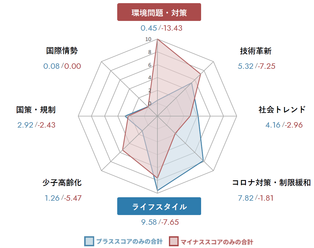 ■プラス要因はライフスタイル、マイナス要因は環境問題・対策の影響が大きいと予測