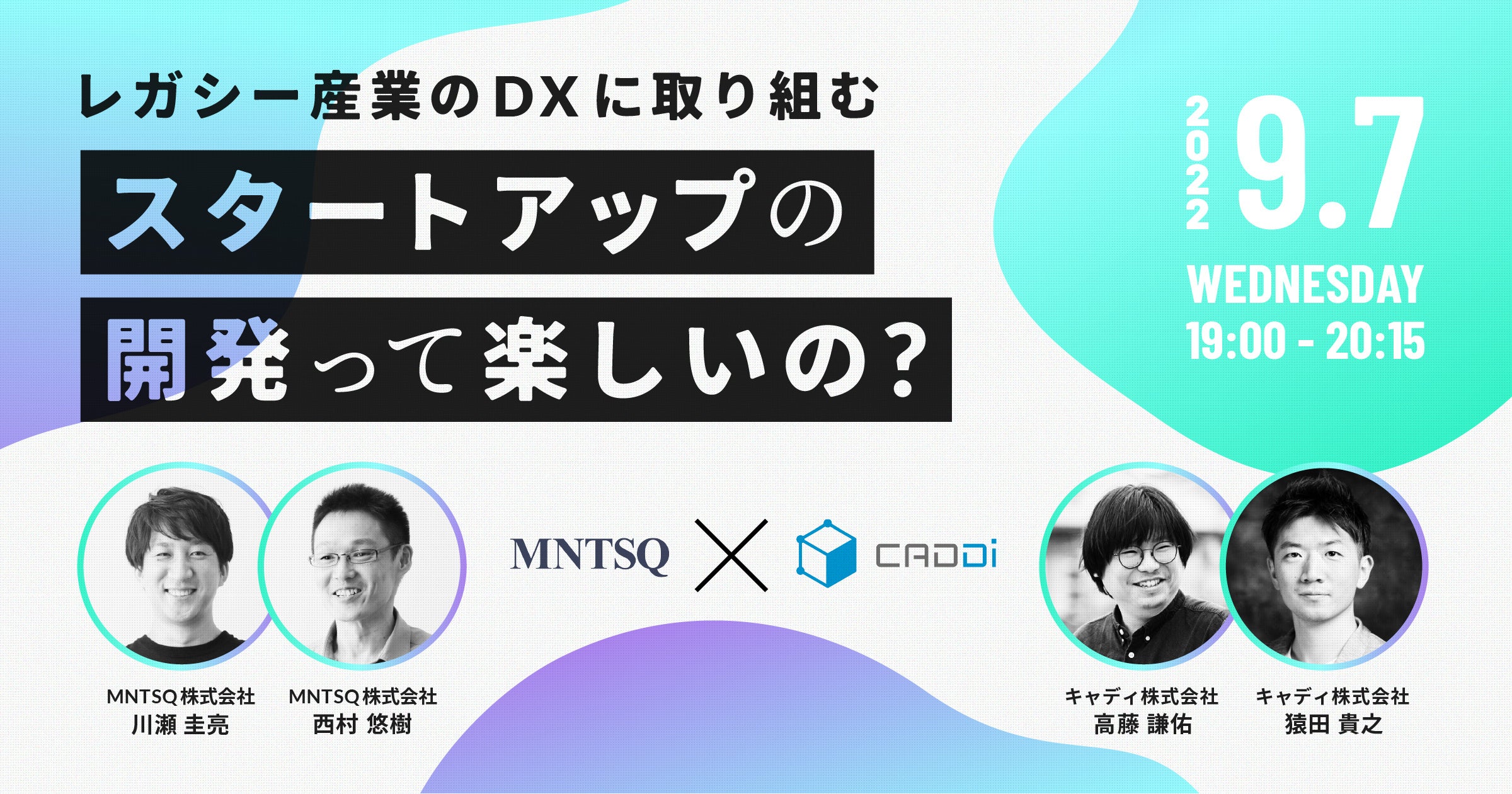 契約業務のDXを推進するMNTSQ株式会社と、製造業のDXを推進するキャディ株式会社のトップエンジニアが登壇し、BtoBビジネスの難しさ/楽しさ、エンタープライズ顧客の攻略、技術スタック、SaaSプロダクトの開発体制など様々なテーマでパネルディスカッションします。