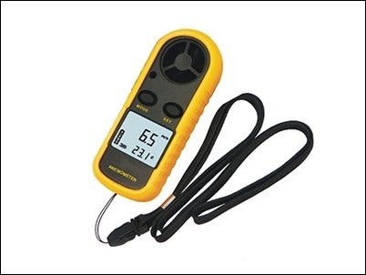 地上の風速を確認する事でフライト前の安全確認に役立つ風速計・温度計です。