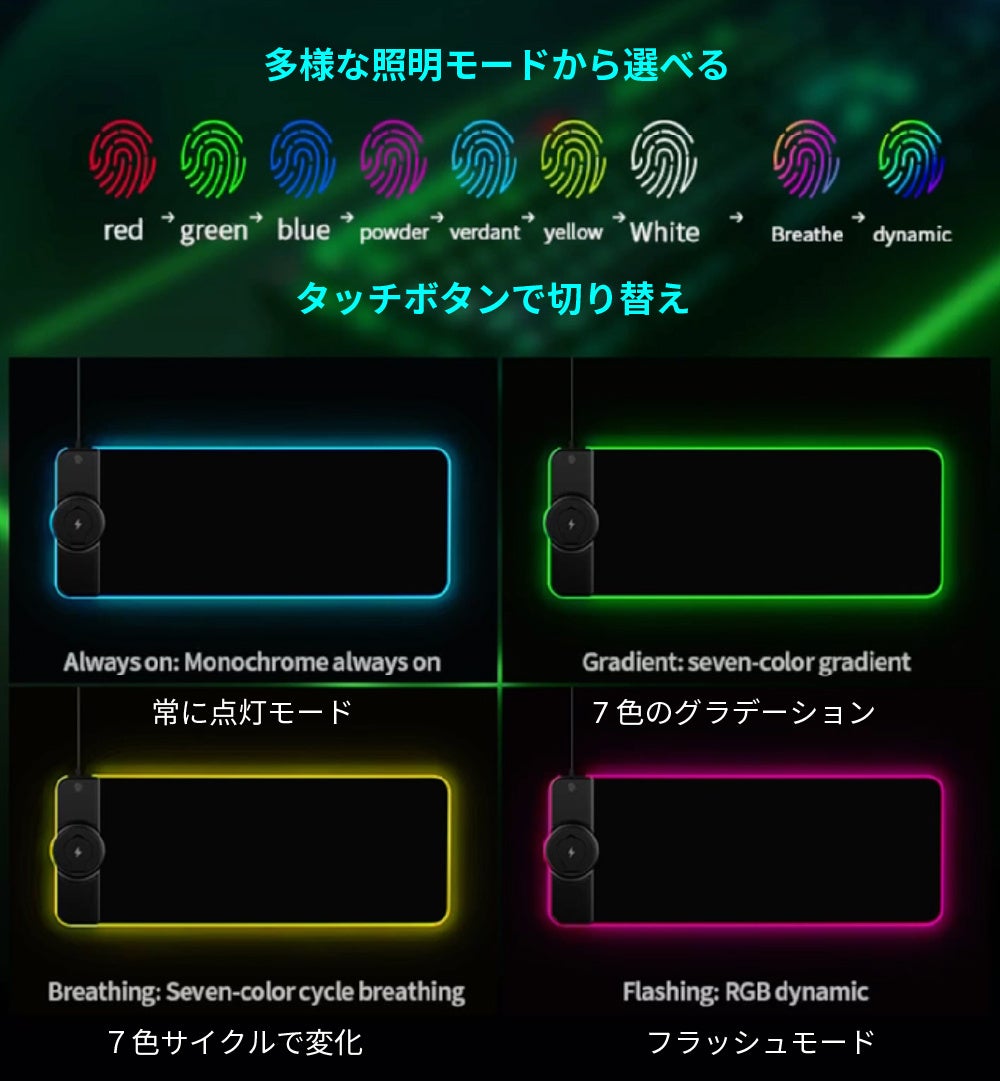 - 気分を高めてくれるLED照明と、充電ができるスマートなマウスパッド