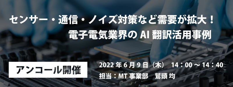 AI自動翻訳のロゼッタ ウェビナー『センサー・通信・ノイズ対策など需要が拡大!電子電気業界のAI翻訳活用事例』6月9日(木)開催