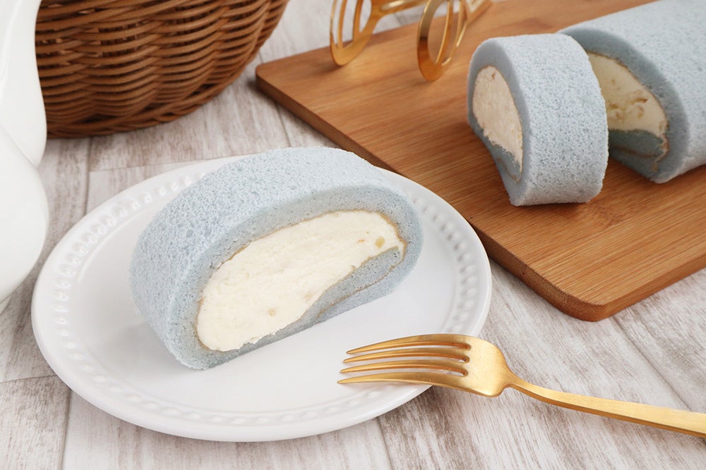 『ウインドボーイズ!』のカラーをイメージした水色の生地(植物生まれのリナブルー使用)に、瀬戸内檸檬ピールを混ぜ込んだヨーグルトクリームを使用した、爽やかな味わいのロールです。