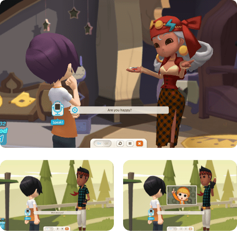 生徒はストーリーの主人公になり、キャラクターたちとのリアリティのある会話を体験し、