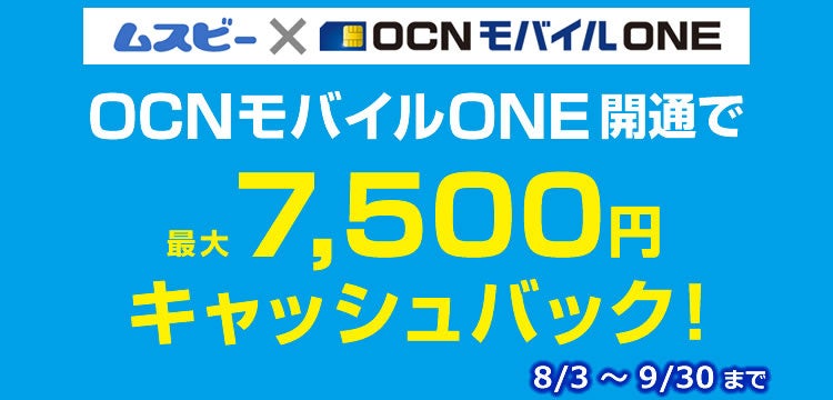 ムスビー専用の申込ページからの申込で、現金最大7,500円がキャッシュバックされるキャンペーンとなります。