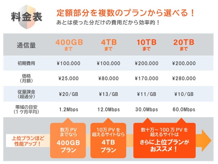 ●低価格から始められ、且つ高速なアクセス環境を実現しています。通信量に合ったプランを選定することで、無駄なく快適にウェブサイトのセキュリティを向上させることができます。