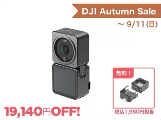 旅行やレジャー、アウトドアなど楽しい撮影シーンが増える「秋」、超コンパクトでどこでも撮れるアクションカメラで、今までにない映像を撮影してみませんか?ゆっくりのんびり楽しめる秋のレジャーやイベントを、滑らかで美しい映像で記録に残していただくための オータムセール は、DJI Action 2 を30%OFF/最大19,140円OFFの特別価格で販売する7日間限定のセールですので、ぜひこの機会にお求めください。