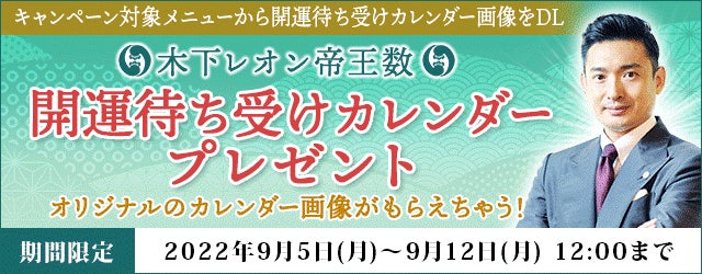 フジテレビ系列で放送中の占い番組『突然ですが占ってもいいですか?』で人気を博している木下レオン。ただいま、月額公式サイト『木下レオン◆帝王数』にて、『木下レオン帝王数 金運向上キャンペーン』を公開中です。期間中、対象の占いメニューにサイトオリジナルの開運待ち受けカレンダーがついてくる、お得なキャンペーンとなっております。ぜひこの機会にお試しください。