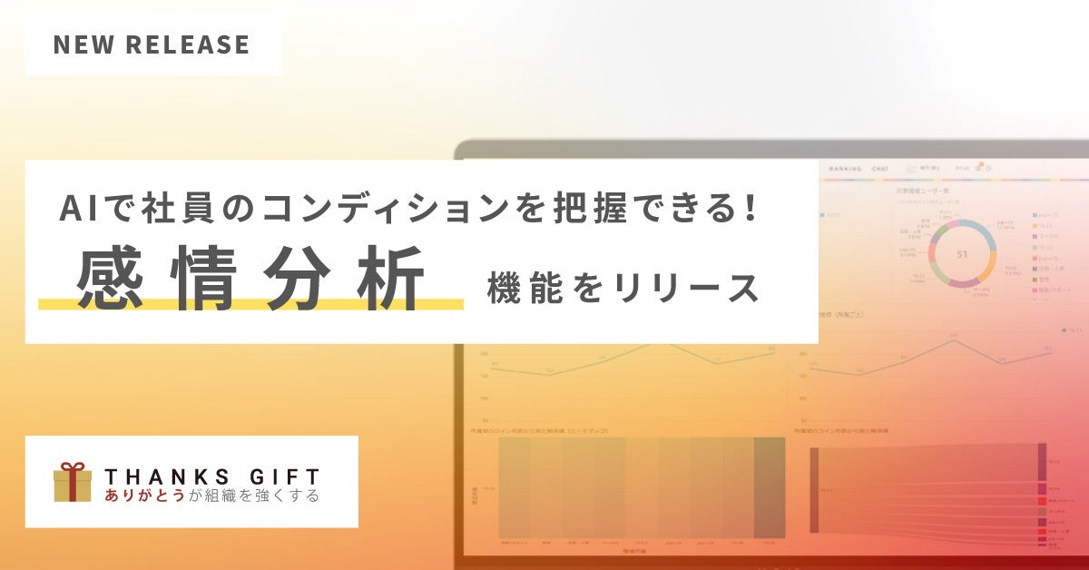 THANKS GIFTのサンクスカード(コイン)のテキストから「キーフレーズの抽出」「感情のスコアリング」が可能になります。※提供開始日:2022年8月9日
