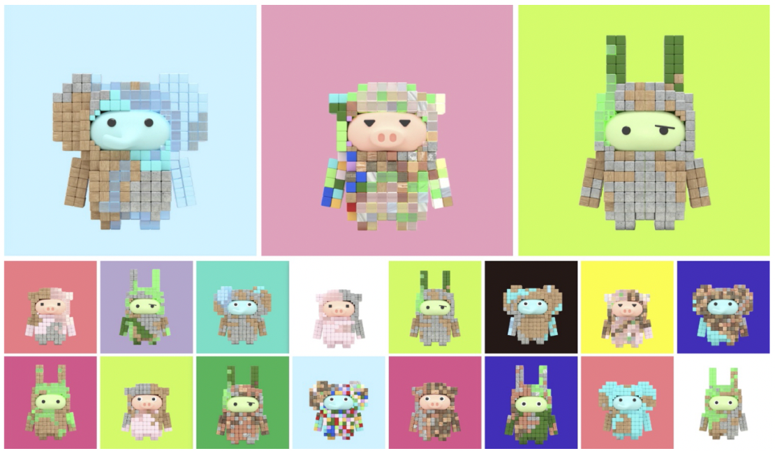 「Recyclulun™」は、博報堂プロダクツがこれまで培ってきたキャラクターやグッズなどコンテンツの企画開発、TVCMなどの映像制作で培った映像編集・3DCG 制作力を掛け合わせて生まれた、ジェネレーティブ NFT。循環型社会の実現をめざし、人間にリサイクルの大切さを楽しく伝えるために誕生したサスティナブルキャラクター。3DCGで作成したリサイクル素材のボクセルを自動的に組み合せて生成する、ジェネレーティブデザイン技術を活用した世界に1つだけの3D NFTです。