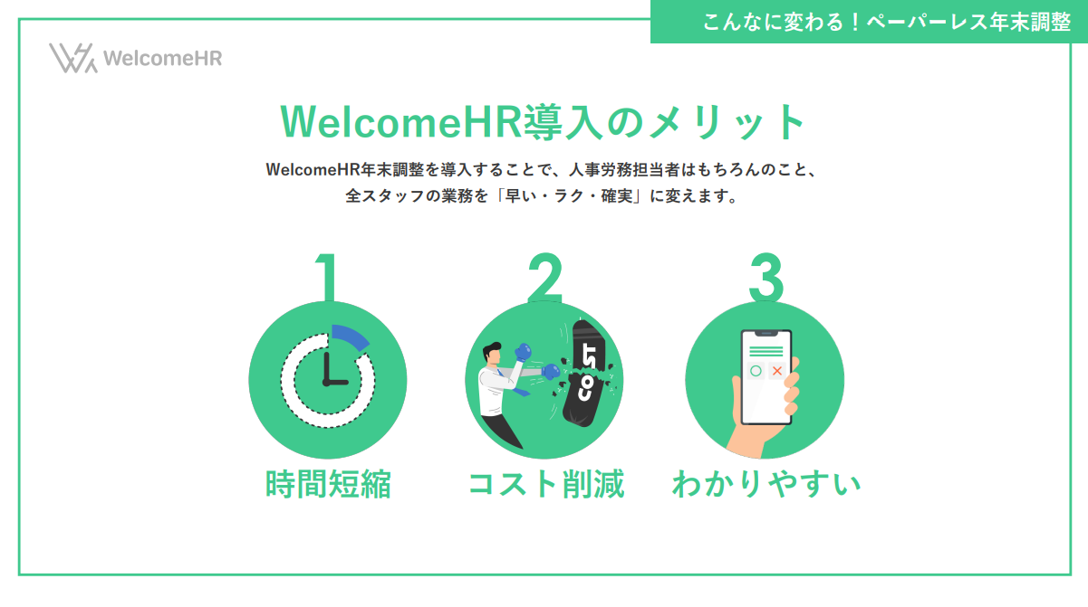 WelcomeHRは、導入コストを抑えて簡単に導入することができますので、紙で年末調整を行っている方・年末調整のペーパーレス化をご検討中の方、ぜひご参加お待ちしております。