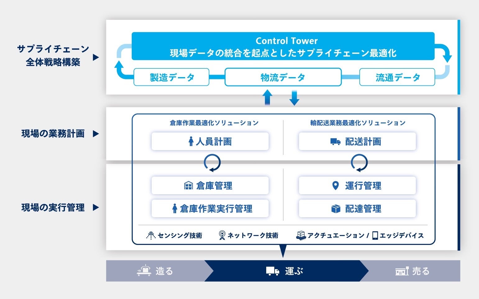 パナソニック コネクトはモノづくりで培った知見とノウハウ、エッジデバイスとIoTに、Blue YonderのAI/ML(機械学習)を活用した世界トップクラスのサプライチェーン・ソフトウェアプラットフォームを組み合わせることで、サプライチェーン全体の戦略構築から各物流現場の業務計画作成・実行管理まで、幅広いニーズに対応するトータルソリューションを提案します。