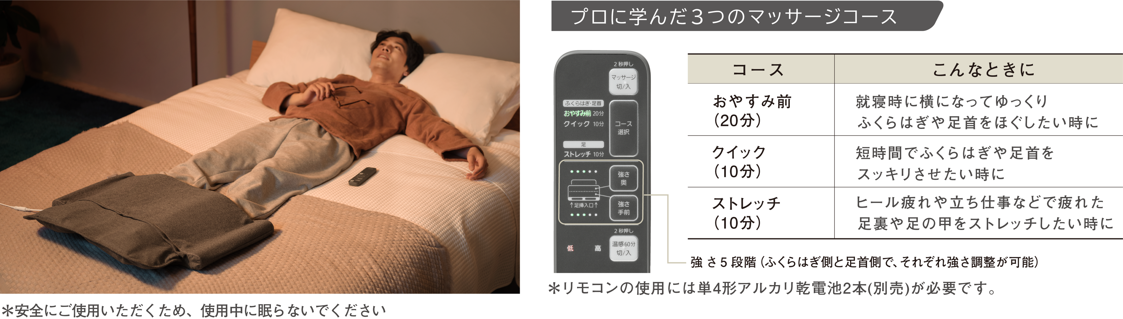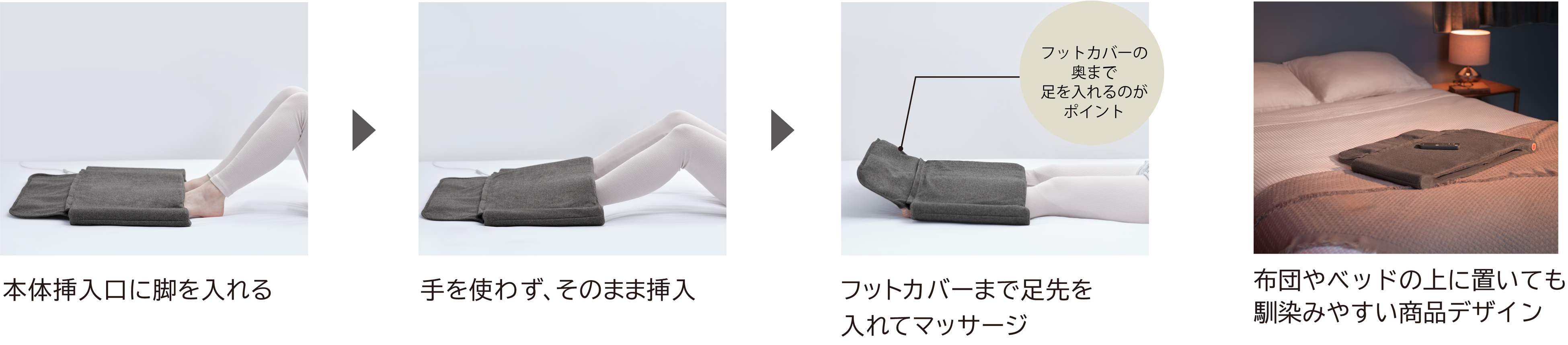 1. ベッドや布団で横になって脚を入れるだけで、プロに学んだしあわせマッサージ