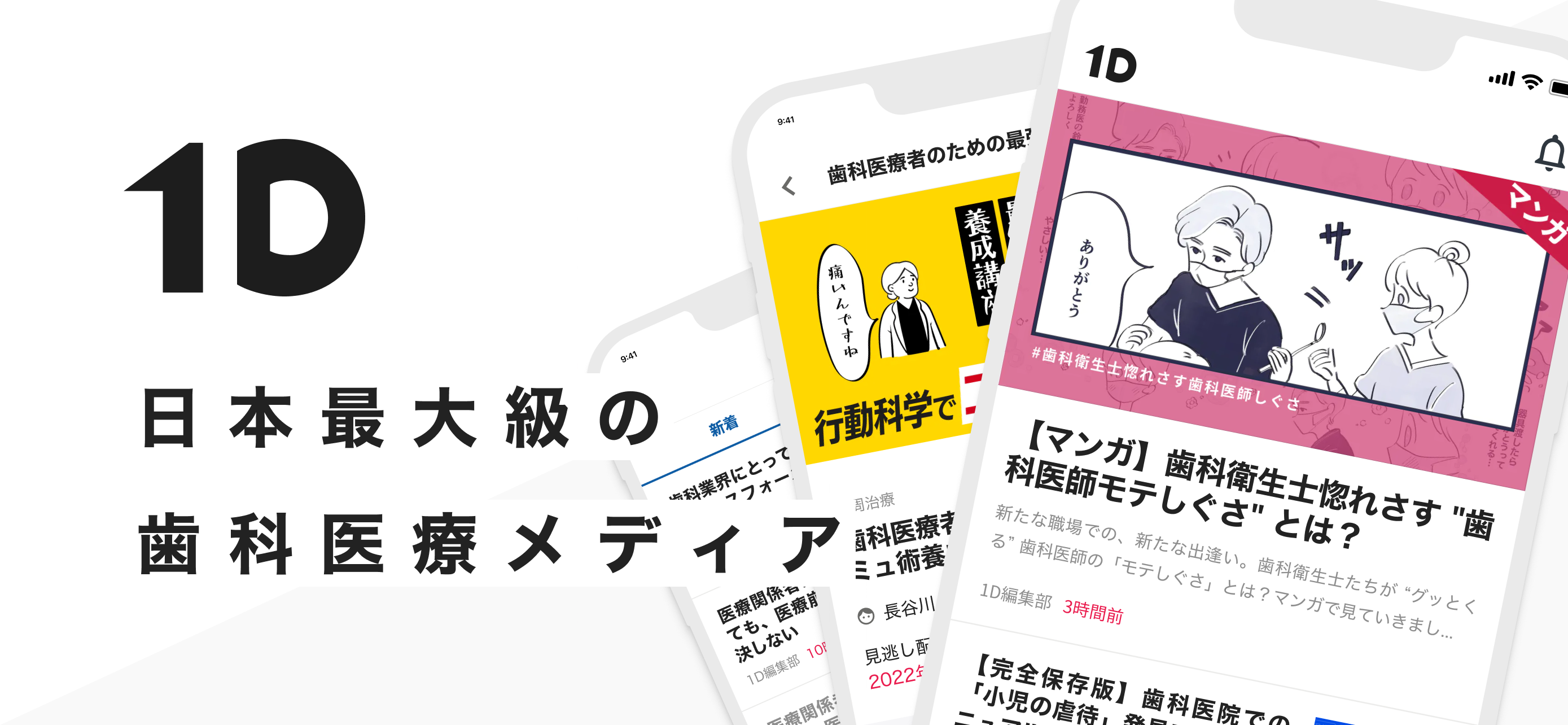 1Dは、歯科医療者向けの情報が集まる日本最大級の専門メディアです。当社独自の記事・ニュースを毎日お届けしているほか、有名講師陣による歯科臨床セミナーや講義動画などのコンテンツラインナップを配信しています。