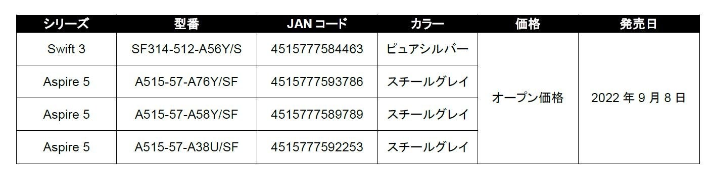 (C) 2022 Acer Inc. All rights reserved. AcerとAcerロゴはAcer Inc.の登録商標です。その他商標、登録商標、サービスマーク等の著作物の著作権は、帰属表明の有無に関わらず、それぞれの権利者に帰属します。発表内容は予告なしに変更または削除されることがありますのであらかじめご了承ください。