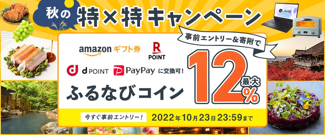【キャンペーン名】最大12%分!付与上限なし! 秋の特×特キャンペーン 事前エントリー&寄附でふるなびコインがもらえる!