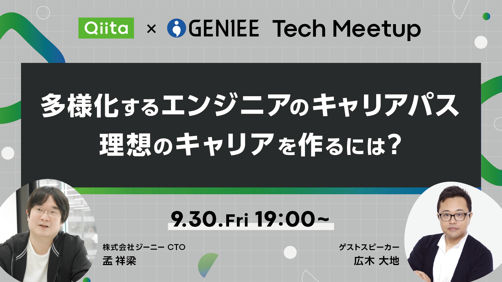 本イベントは、日本最大級のエンジニアコミュニティ「Qiita」を運営する当社と、広告プラットフォーム「GENIEE Ads Platform」やマーケティング・営業DXツール「GENIEE Marketing Cloud」を始めとする、アドテクノロジーに特化した複数のサービスを運営するGENIEE社が共同で開催するオンラインのテックトークイベントです。
