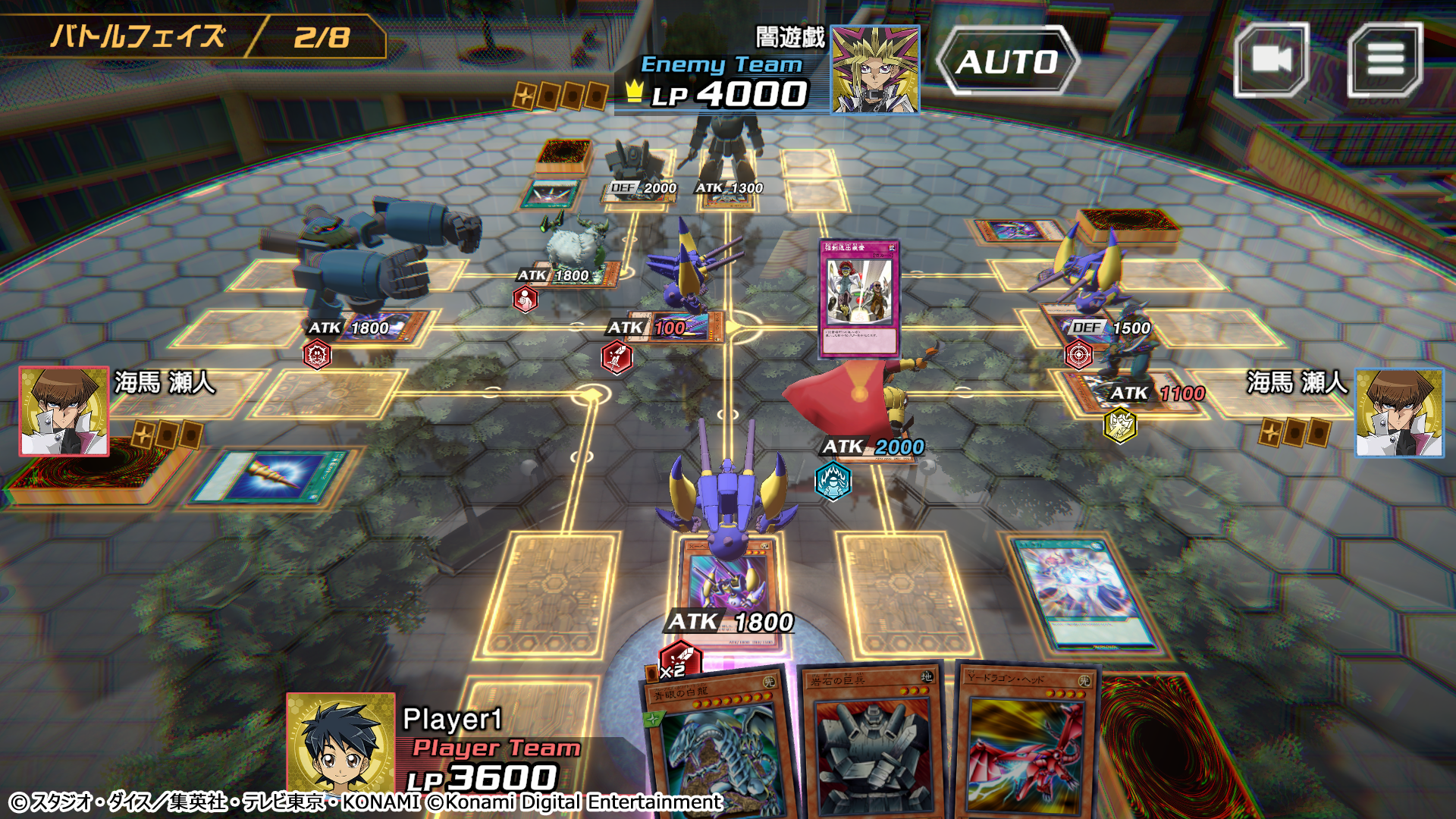 本作は、4人でデュエルを繰り広げる新感覚のデジタルカードゲームです。プレーヤーが取り囲むフィールド上では3Dのモンスターがド迫力で躍動します。さらに、「遊☆戯☆王」アニメシリーズ歴代7作品のキャラクターたちが登場し、お馴染みのキャラクターボイスでデュエルを盛り上げます。目まぐるしく変化する戦況を読みながら、4人対戦ならではの駆け引きが楽しめます。
