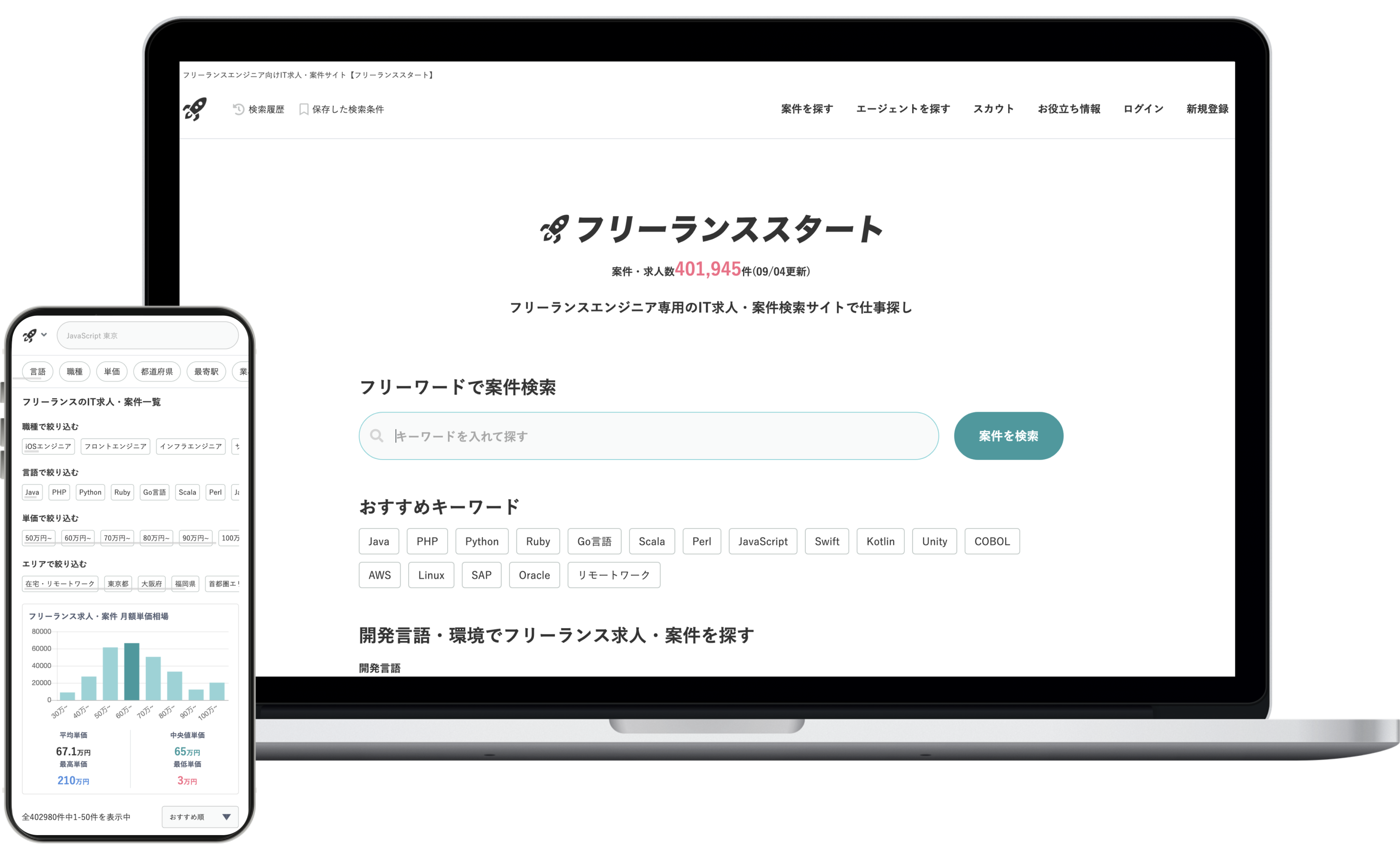 ・フリーランスエンジニア向け案件一括検索サイト「フリーランススタート」(https://freelance-start.com)