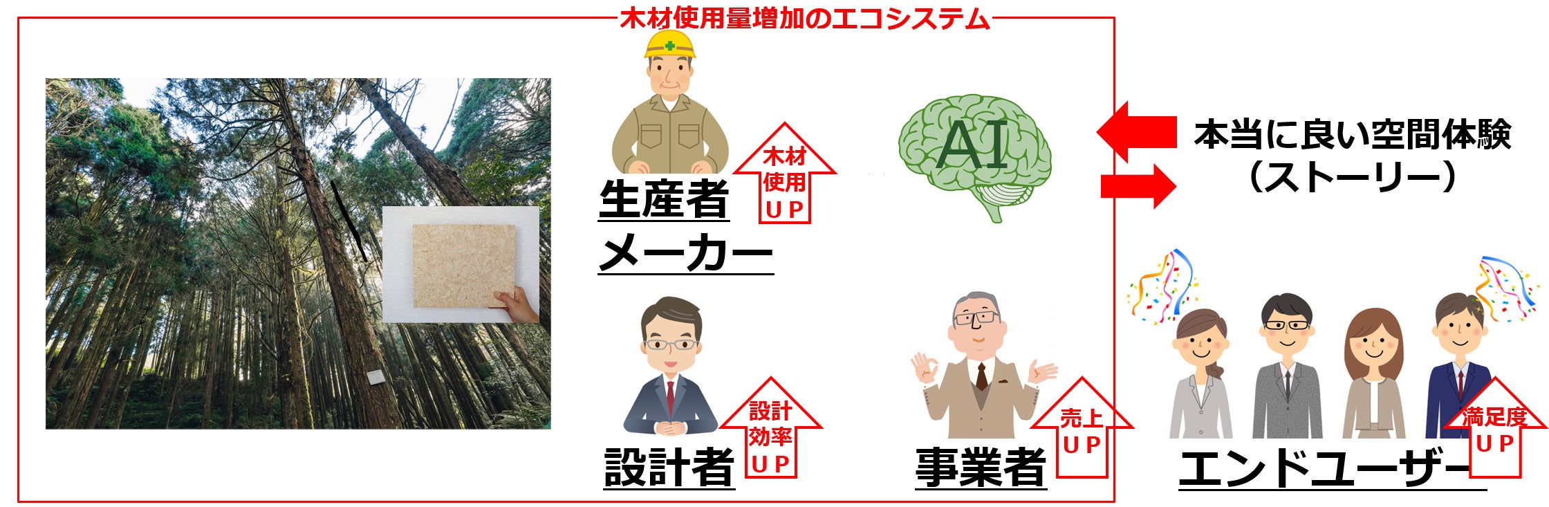 本プロジェクトは、林野庁の補助事業、SUSTAINABLE FOREST ACTION 2022(以下、SFA2022、https://action.sustainable-forest.com/)と令和4年度内外装木質化等の効果実証事業(https://www.howtec.or.jp/publics/index/377/)の2件の採択を受けて実施するものです。