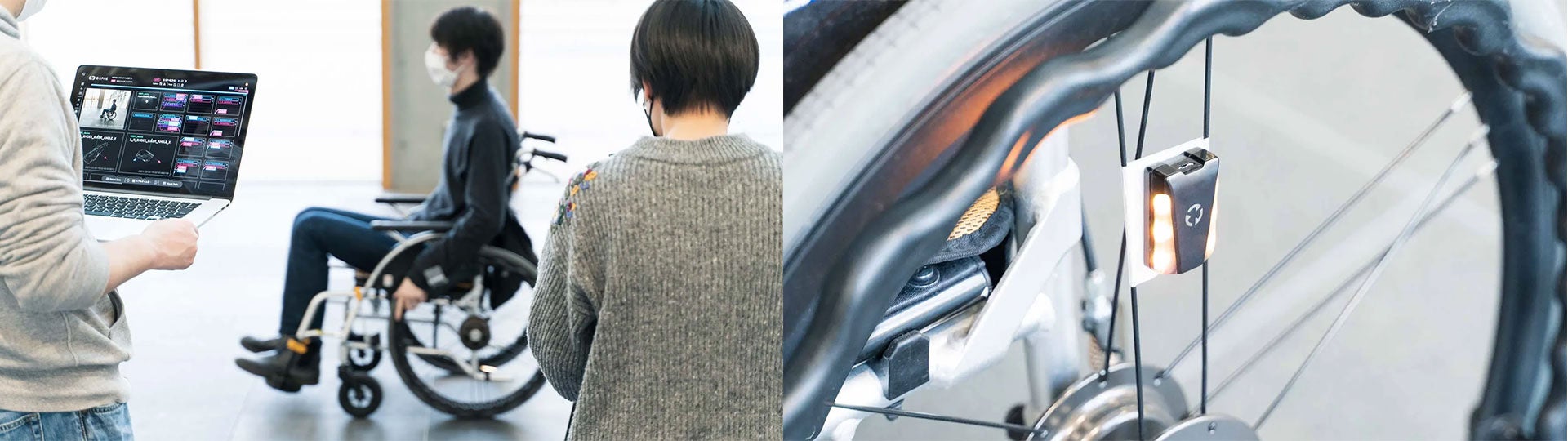 車椅子利用者に使い方を指導する場で、エビデンスに基づいてその人にあった漕ぎ方を理解するため、車椅子にセンサーデバイスを取り付けてデータを収集・解析しています。
