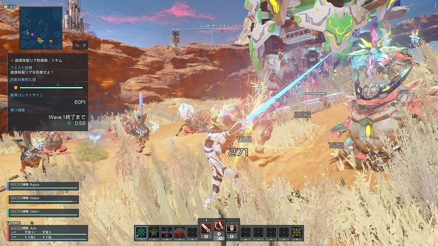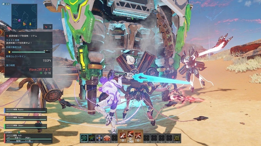 「資源採掘リグ防衛戦」がリテムリージョンにも登場します。緊急クエスト「資源採掘防衛戦:リテム」は、南リテムの岩石砂漠が舞台となり、大量のエネミーを相手に岩山や谷間を利用した立体的な攻防戦を楽しめます。