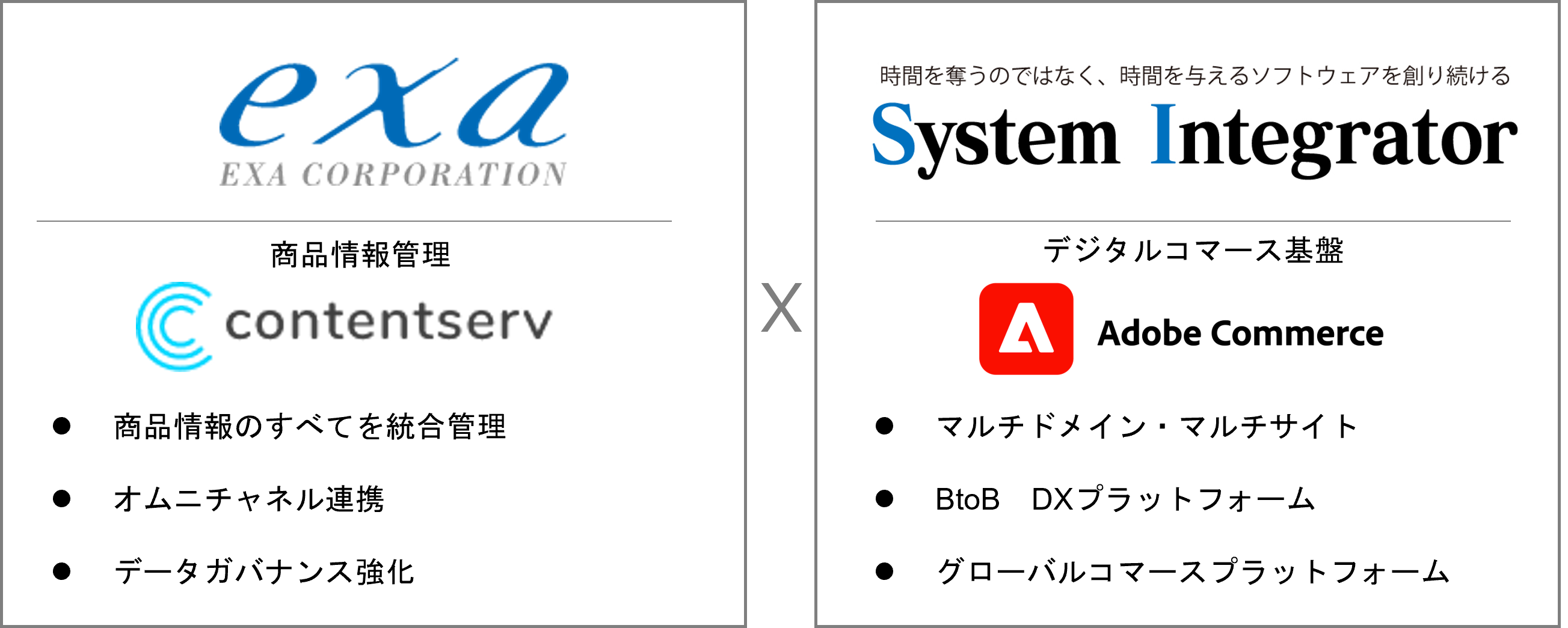 「エクサ様とシステムインテグレータ様の協業により、リッチコンテンツ管理からコマースまでのエンドトゥエンドのソリューションを提供できることを大変嬉しく思います。 Contentserv PIM/DAMとAdobe Commerceのシームレスな連携はデジタルショッピング体験を新たな次元へと高めていけるものと確信しています。」