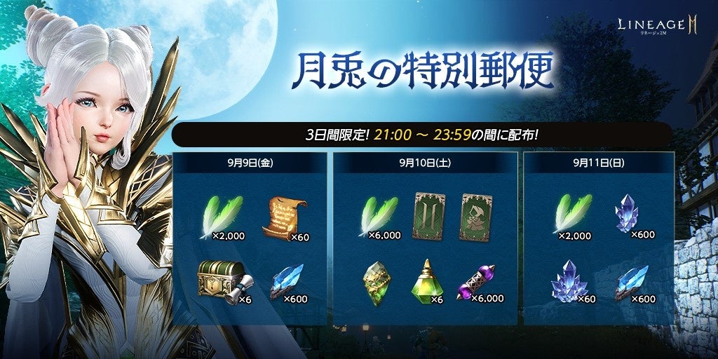 上記期間中、毎日21時にゲーム内郵便にてアイテムをお送りします。