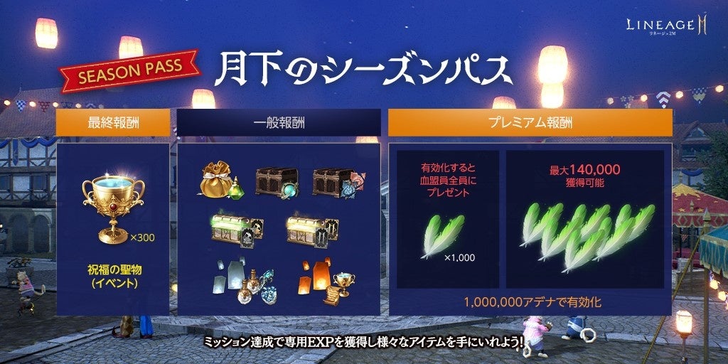 毎日達成していくデイリー ミッションと2週間でクリアを目指すシーズン ミッションとして新規シーズンパス イベント「月下のシーズンパス」が登場します。