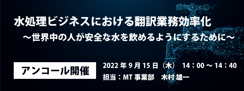 そこで本ウェビナーでは、「水処理ビジネスにおける翻訳業務効率化」というテーマで、市場調査、規制調査、法務、現地従業員教育など様々な場面で言語の壁を越えていくためのAI自動翻訳ソリューションをお届けします。