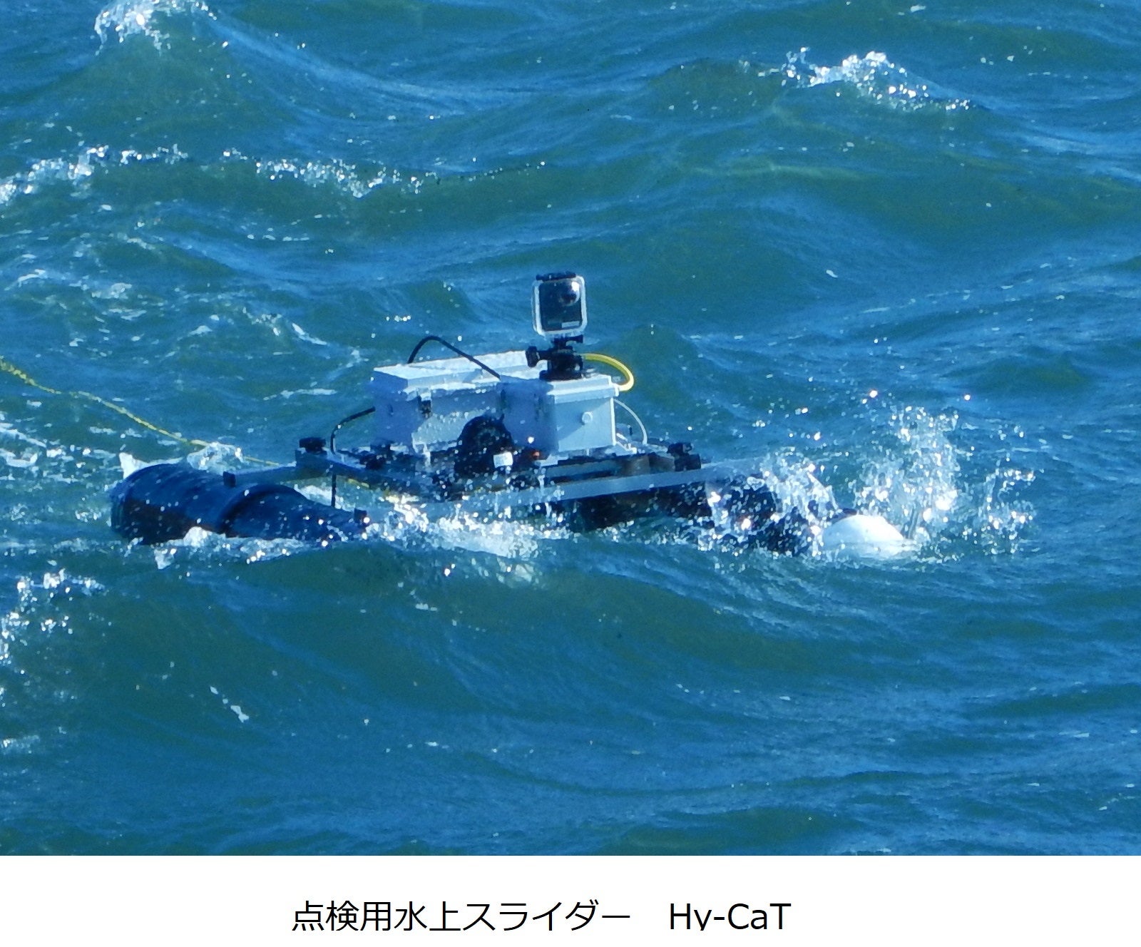 水上部及び水中部の撮影に主眼を置いており、効率よりも安定性を重視し、揺れに強い カタマラン構造としました。フレームはエアチューブフロートに直結して扁平構造とし、 低重心にするとともに風の影響を軽減させました。また、接水面積を増やすことで揺れ からの復元力を高めた他、先端を円錐構造とすることで航行による揺れを軽減する設計 としました。