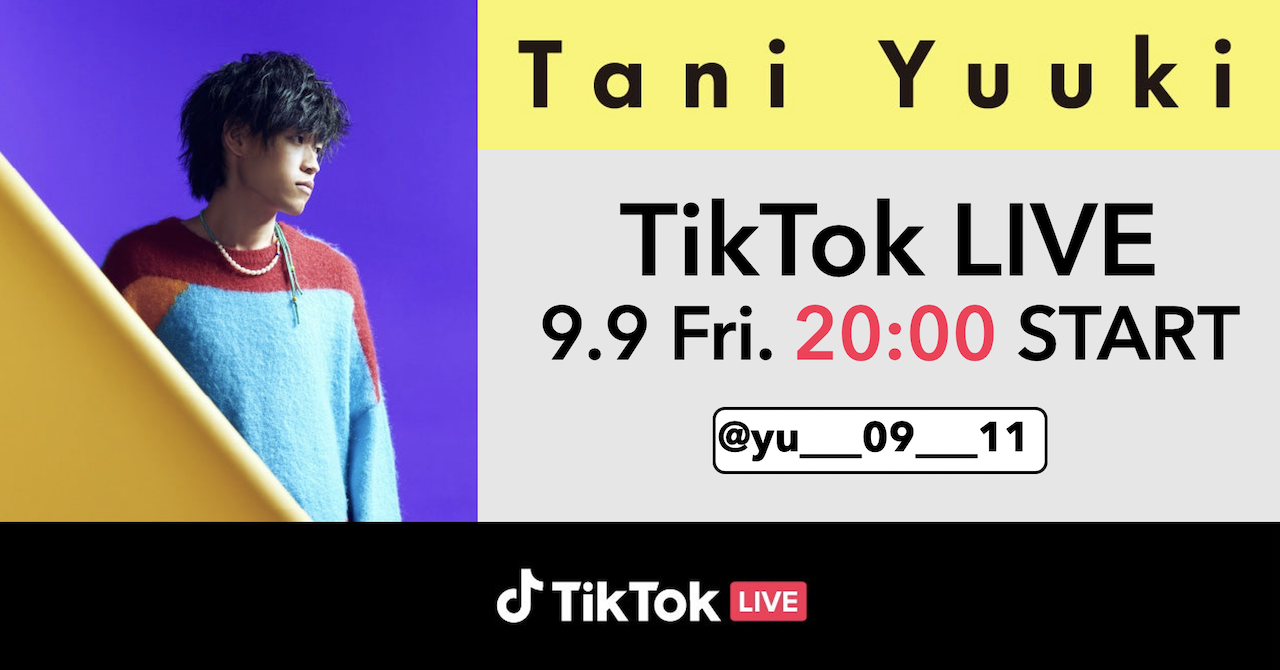 ショートムービープラットフォーム「TikTok(ティックトック)」は、9月9日(金)20時より、シンガー・ソングライターTani YuukiのTikTok LIVEを行います。