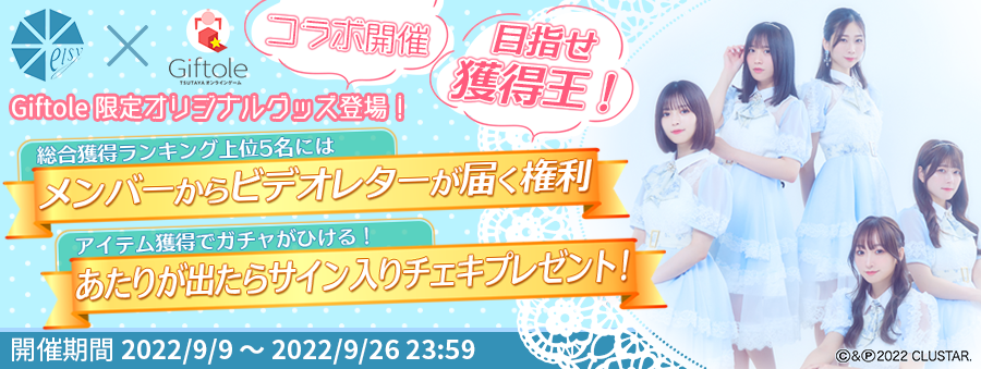 期間中、elsyコラボグッズを最も多く獲得いただいた総合獲得ランキング1~5位の方に、『メンバーからビデオレターが届く権利』をプレゼント!