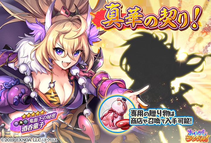 今回「真華の契り」の対象式神として、★5「[鬼面下の秘密] 酒呑童子」が新たに追加されました!