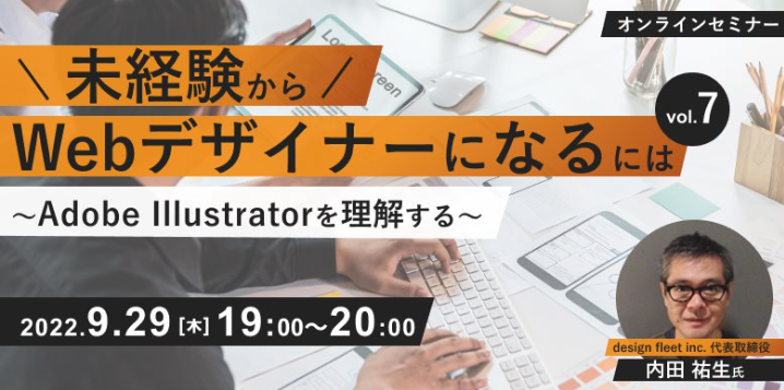 第7回となる今回は、現役のWebディレクター/デザイナーとしても活躍するdesign fleet inc. 代表取締役の内田 祐生氏にご登壇いただき、プロの現場で必ず使われているアプリケーション「Adobe Illustrator」について分かりやすくお話していただきます。「Adobe Illustratorは何ができるソフトなのか知りたい」「プロの現場でIllustratorがどのように使われているかを知りたい」「スキルとしてIllustratorを習得するためのポイントを知りたい」といった方におすすめの内容です。“Web業界のいろは”をお知りになりたい方は、ぜひご参加ください。