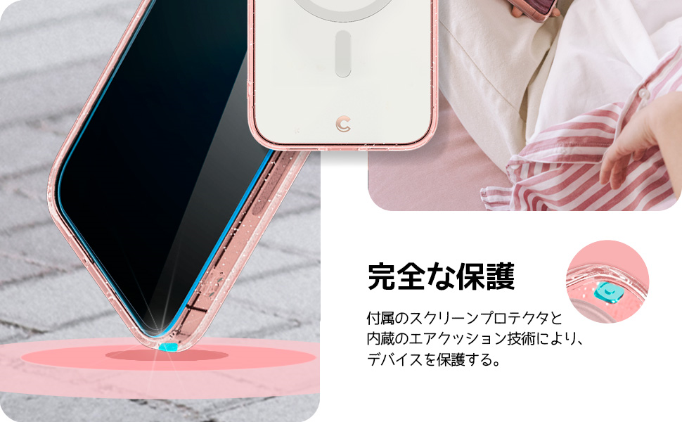 Spigen強化ガラス2ピースとCYRILLケース1ピースで構成されたSpigenxCYRILLは、Spigen強化ガラスとCYRILLケースデザインのコラボレーション製品です。 あなたのクラッシュさをきらめくグリッターで、思う存分抜くことができます。 内蔵マグネットでMagsafe充電時に強力なワイヤレス充電機能および着脱を提供します。