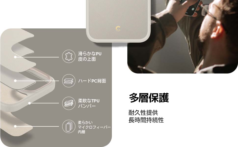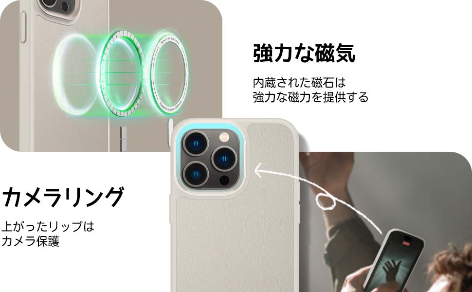 プレミアム合成皮革がさらにサラサラ感触を感じさせ、高級感のあるスタイルを演出したい方におすすめ。 CYRILLならではの繊細な設計と精密なカットアウトはもちろん、14カジュクはストラップホールがあり、お好きなストラップなどを付けることができます。 内蔵マグネットでMagsafe充電時、魔法のような着脱·無線充電機能を提供します。