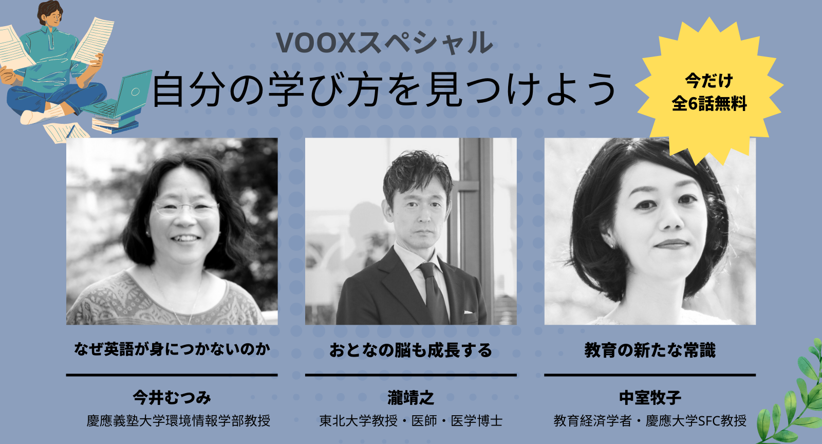 VOOXは、学びに特化した音声メディアです。1話10分、6話完結のコンテンツ構成で、現在400話以上の第一人者たちの実践知と人々を鼓舞する生の声をお届けしており、月曜日に新規シリーズを公開しています。新規シリーズは、公開から1週間は、どなたも無料でお楽しみいただけます。