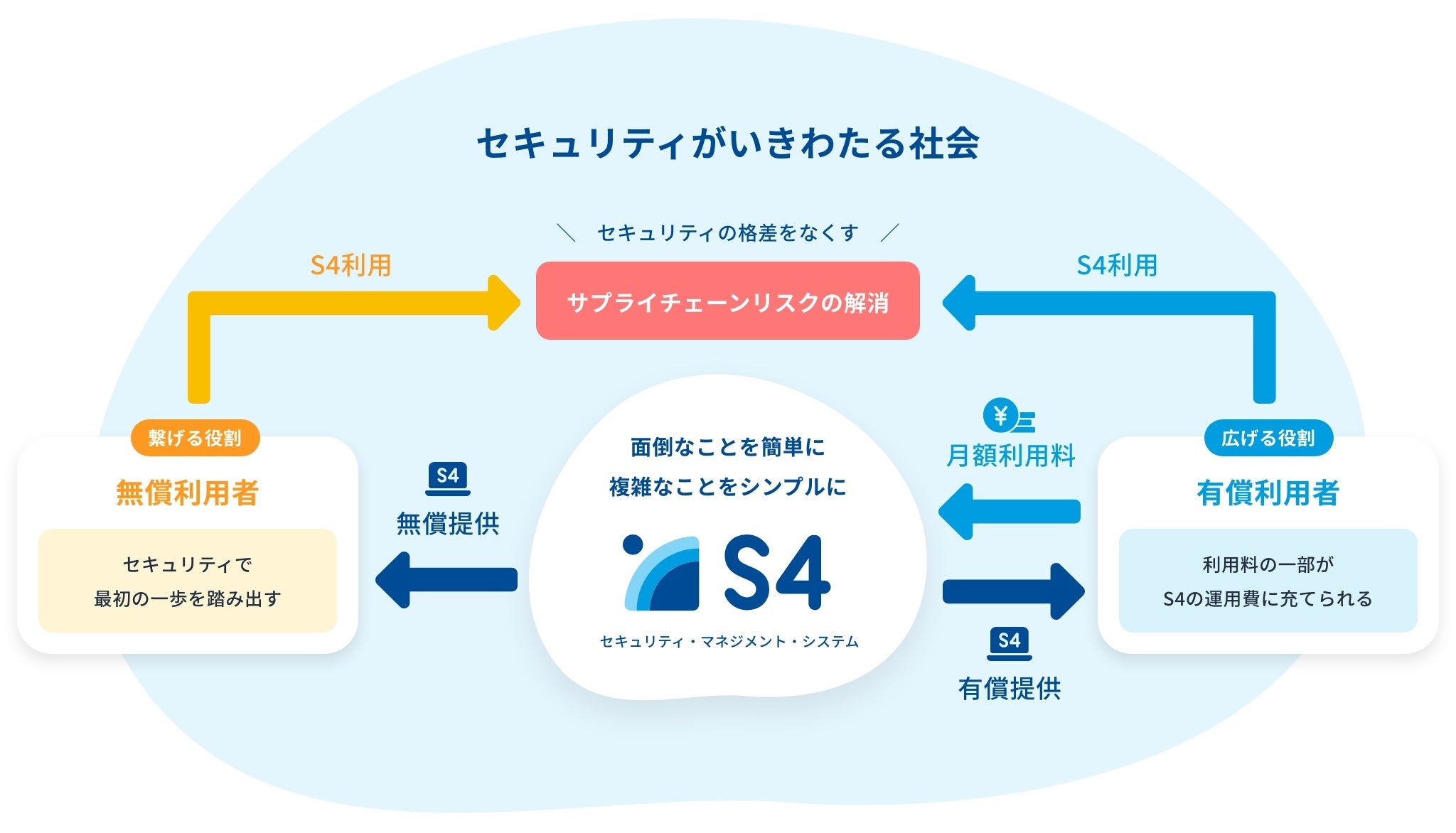 お金を出せる顧客のみにセキュリティを提供することは、企業としては合理的な判断です。しかし、お金の出し手が無いことで放置されているサプライチェーンリスクを解消しないことは、社会全体で見た時に、非常に不合理なことなのではないでしょうか。私たちは、S4のオープンソースを、一企業の活動から、社会的活動に繋がる、積極的なセキュリティ格差解消策に育みたいと考えております。