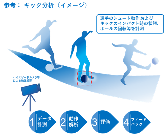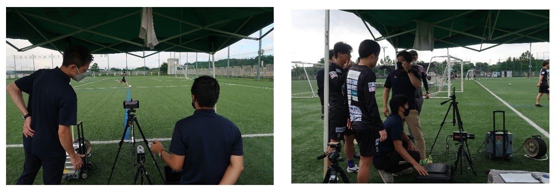 ・ハイスピードカメラを設置し、選手のキックのインパクトの瞬間とボールの回転等を計測