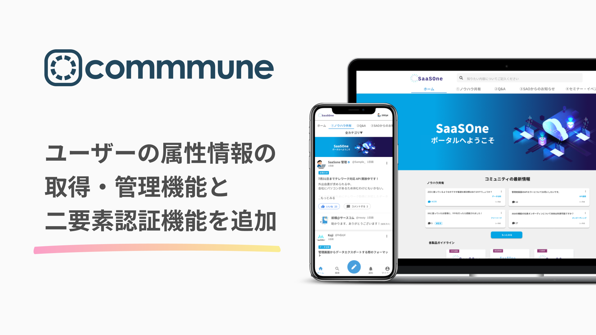 コミュニティ内のすべてのユーザーから、ユーザーの属性情報を取得することができる機能です。取得した情報を元に管理画面でのグループ付与もでき、コミュニティ体験の個別最適化を実現します。取得する情報は、管理者によって自由に設定が可能です。合わせてリリースされた「二要素認証機能」により、新たに取得できるようになるユーザーの属性情報も、これまで以上に安心・安全に管理することが可能となります。