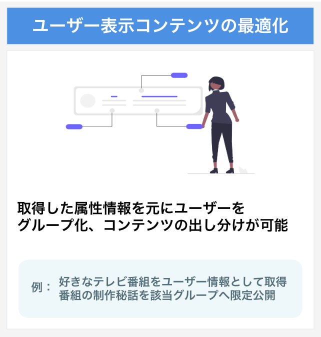 ▽ユーザーから属性情報を取得できるようになることで、下記のような活用方法が可能に