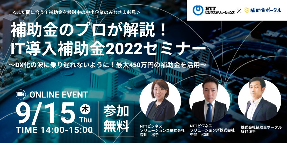 今回、補助金ポータルでは「今から取り組むIT導入補助金!」をテーマに、現状の採択状況や、今から取り組むうえでのポイントについて解説するセミナーを開催します。