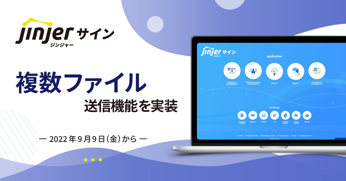 「ジンジャーサイン」では、これまで契約相手に複数の契約書類を締結する必要がある際は、契約書ごとに書類を送信する、もしくは契約書のファイルを結合する必要がありました。今回の複数ファイル送信機能の実装により、複数の契約書を1回の送信で完結することができ、業務工数の削減につながります。