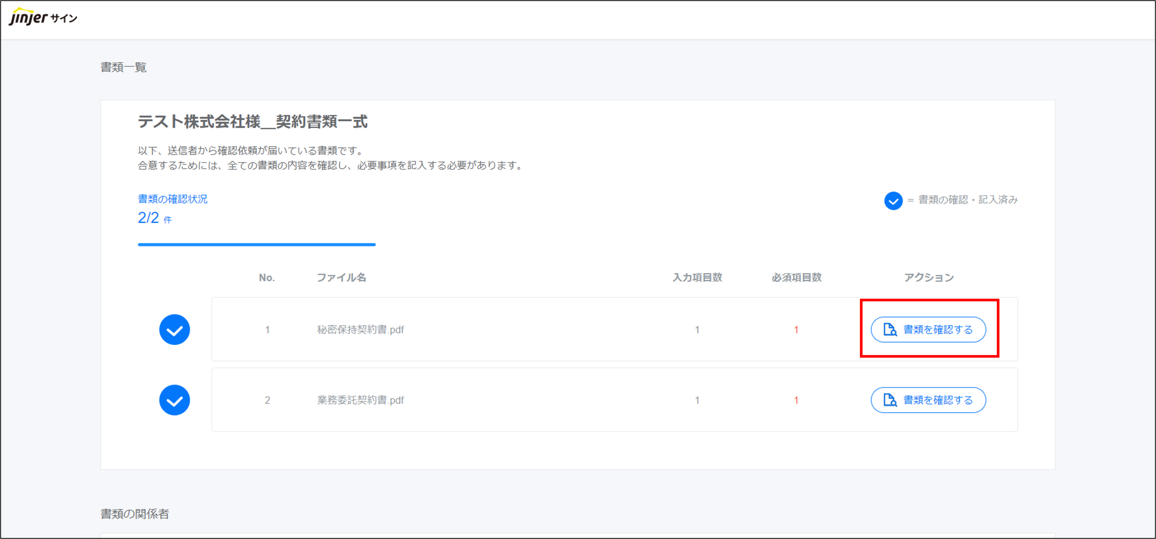 書類一覧画面にてファイル名が一覧で表示され、書類の確認及び入力業務が可能です。